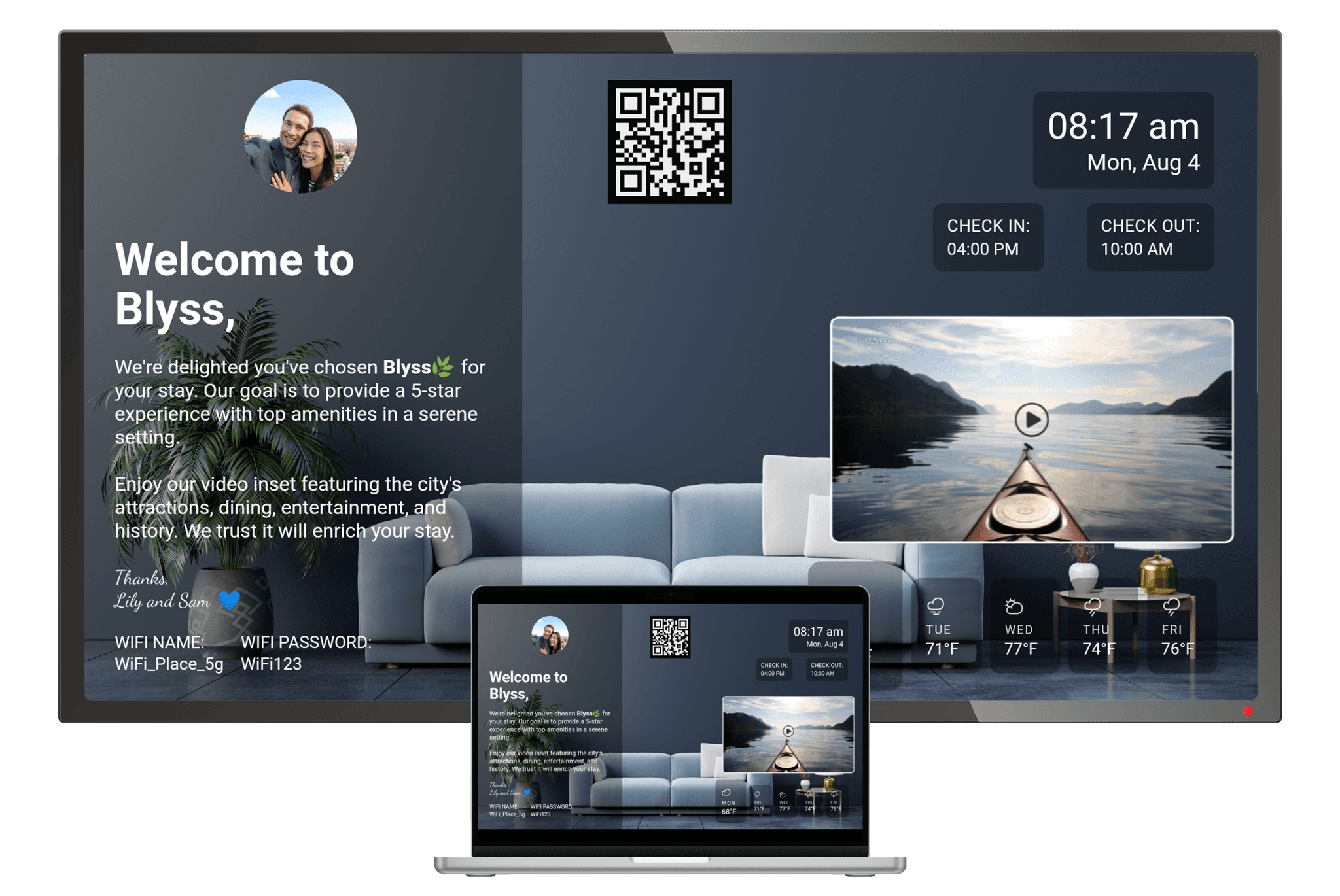 My hosts send this to me and finally talked me into it. It’s a great product and so user-friendly. I had to use a firestick with my LG TV but it works great. I had to go to setting to tell LG to turn on to the Firestick and that’s was it. My guest comment immediately after check-in when they turn on to get the wifi and see their name on the TV.